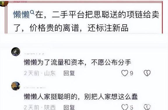 下一次热搜关键词会是什么?谁也说不准。只知道咸鱼上已出现高仿同款项链,商品描述一句“思聪前任同款”,标价四千九,比正品便宜十倍。评论区里最高赞的留言特扎心:“买不起正品,还买不起前任吗?”